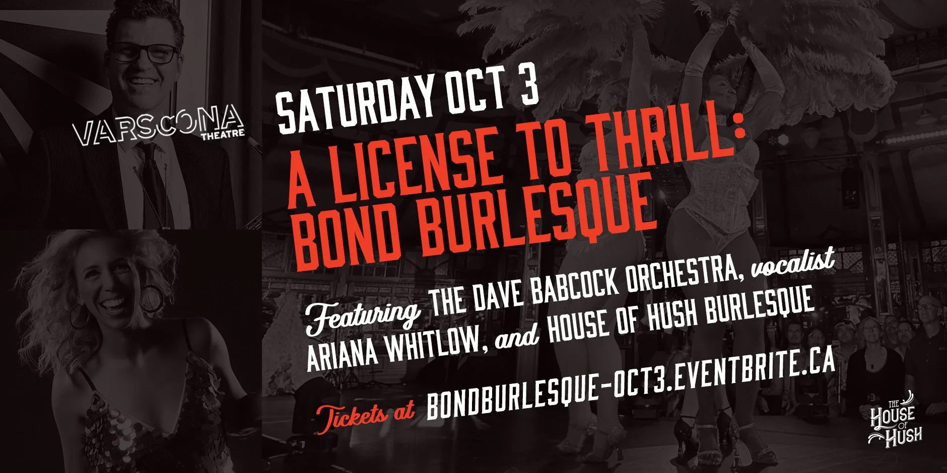 Join us on Saturday, October 3, 2026 as we present A License to Thrill: Bond Burlesque, featuring the exciting sounds of the Dave Babcock Orchestra, vocalist extraordinaire Ariana Whitlow, and House of Hush Burlesque.